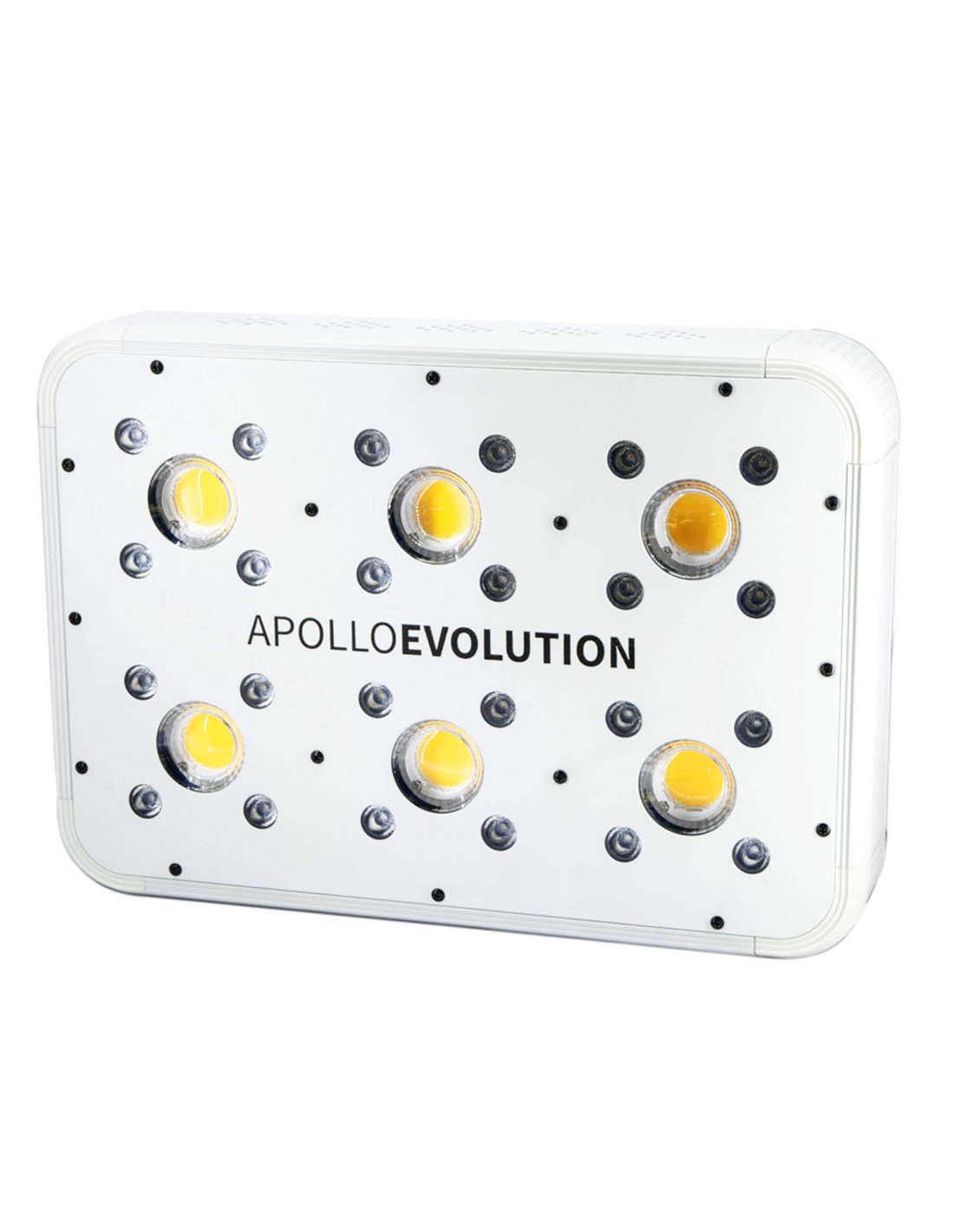 Apollo Evolution 6 cuenta con seis COB (Chip on Board) full espectro y 24 SMD (Surface mounted device) que potencian la curva de ciertos espectros, entregando toda la energía fotosintética que requiere la planta en cada etapa de crecimiento con el menor gasto energético para los clientes.